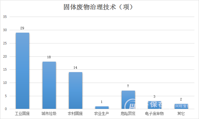 纵观国家生态环境科技成果转化综合服务平台,展示的固体废物处理处置技术共166项,其中治理技术如下图所示: